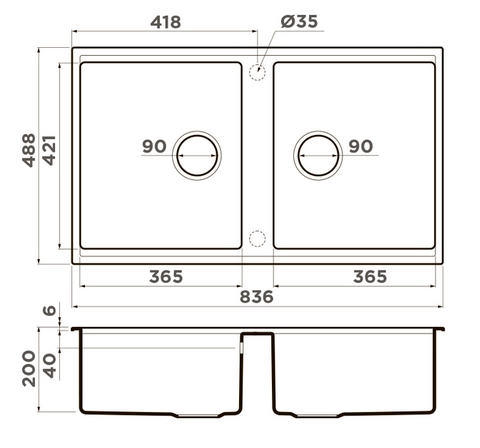Тип конструкции — оборачиваемая: при установке можно выбрать ориентацию, чтобы рабочие процессы были на привычной стороне. Две основные чаши одинакового формата 36.5×42.1 см с вертикальной глубиной 20 см позволяют параллельно мыть и ополаскивать, сортировать продукты или отделять чистую посуду от грязной. Перелив защищает от переполнения, оставляя запас по безопасности при ежедневном использовании.