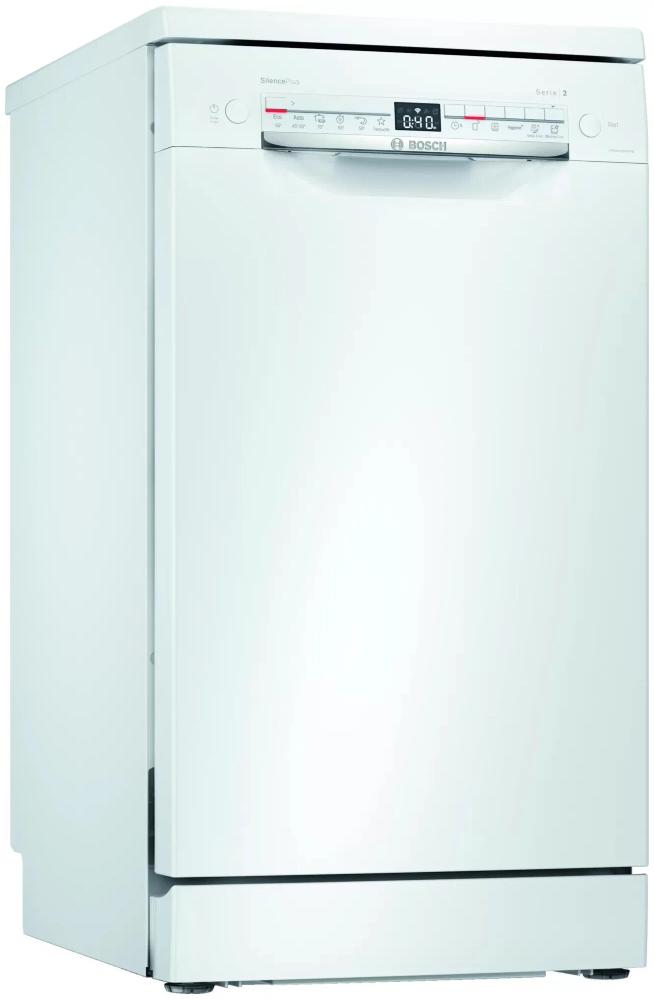 Отдельностоящая модель Бош отлично впишется в кухонный интерьер, главное — правильно выбрать место, чтобы подвести коммуникации. Имеет уменьшенную ширину — благодаря этому поместится даже на очень маленькой кухне. В камеру можно загрузить ограниченное число комплектов: 10 шт. Комплектом считается набор посуды на одного человека, который нужен для полноценного приема пищи: глубокая и плоская тарелки, тарелка для салата, блюдце под чашку, сама чашка, ложка и вилка.