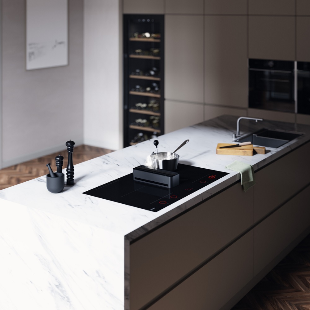 Панель оснащена четырьмя индукционными конфорками, которые обеспечивают быстрый и равномерный нагрев продуктов. Благодаря функции автоматического распознавания посуды, она оптимизирует распределение тепла, что позволяет экономить энергию и время приготовления. Кроме того, есть функция объединения конфорок, что позволяет готовить в больших или нестандартных по форме кастрюлях, сковородах или теппанах.