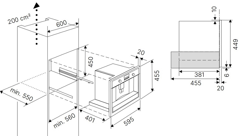 молотый / зерновойГабариты ниши для встраивания (см) (ШхВхГ)