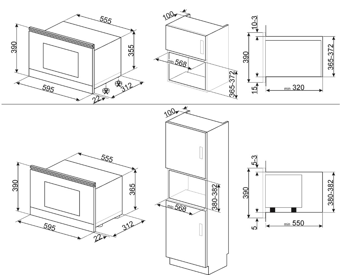 Модель объемом 22 литра и шириной 60 см удачно встраивается в колонну с другой домашней техникой. Фасад изготовлен из эмалированной стали. Режим SHOWROOM позволит изучить все возможности прибора без затрат электроэнергии. Максимальная мощность микроволн составляет 850 Вт и может регулироваться на пяти ступенях. Благодаря керамическому основанию внутренней камеры приготовление производится без поворотного столика, а объем камеры увеличивается. Электронный таймер позволяет задать время начала или окончания приготовления с автоматическим отключением и подачей звукового сигнала.