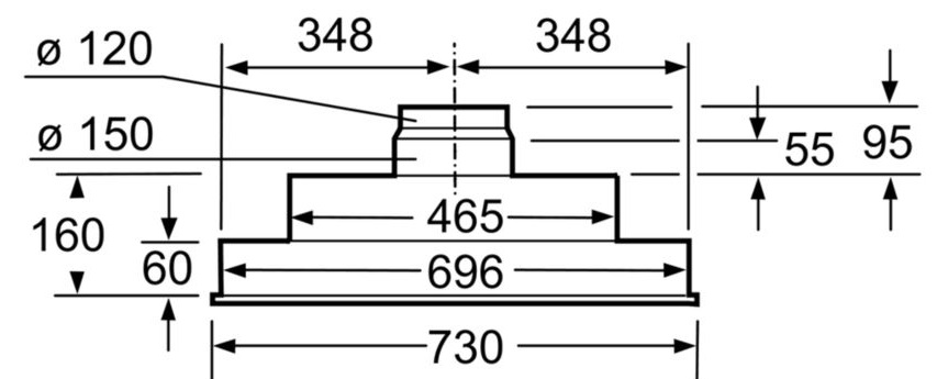 Модель монтируется в подвесной шкаф: благодаря ширине 73 см она подойдет для установки над варочной панелью с тремя, четырьмя и даже пятью конфорками. Вытяжка способна работать в режимах отвода и рециркуляции. В первом варианте ее нужно присоединить к системе вентиляции для вывода загрязненного воздуха за пределы помещения. Во втором вариант воздух очищается при помощи фильтров и возвращается обратно в помещение: для тонкой очистки и удаления посторонних запахов необходимо приобрести дополнительно и установить угольный фильтр. Жироулавливающий фильтр для задержки капель жира и защиты мебель и механизма самой вытяжки от налета представляет собой металлическую сетку — он поставляется вместе с изделием. Этот многоразовый фильтр можно снимать для очистки и мыть в посудомоечной машине. Угольный фильтр следует менять один раз в два-три месяца.
