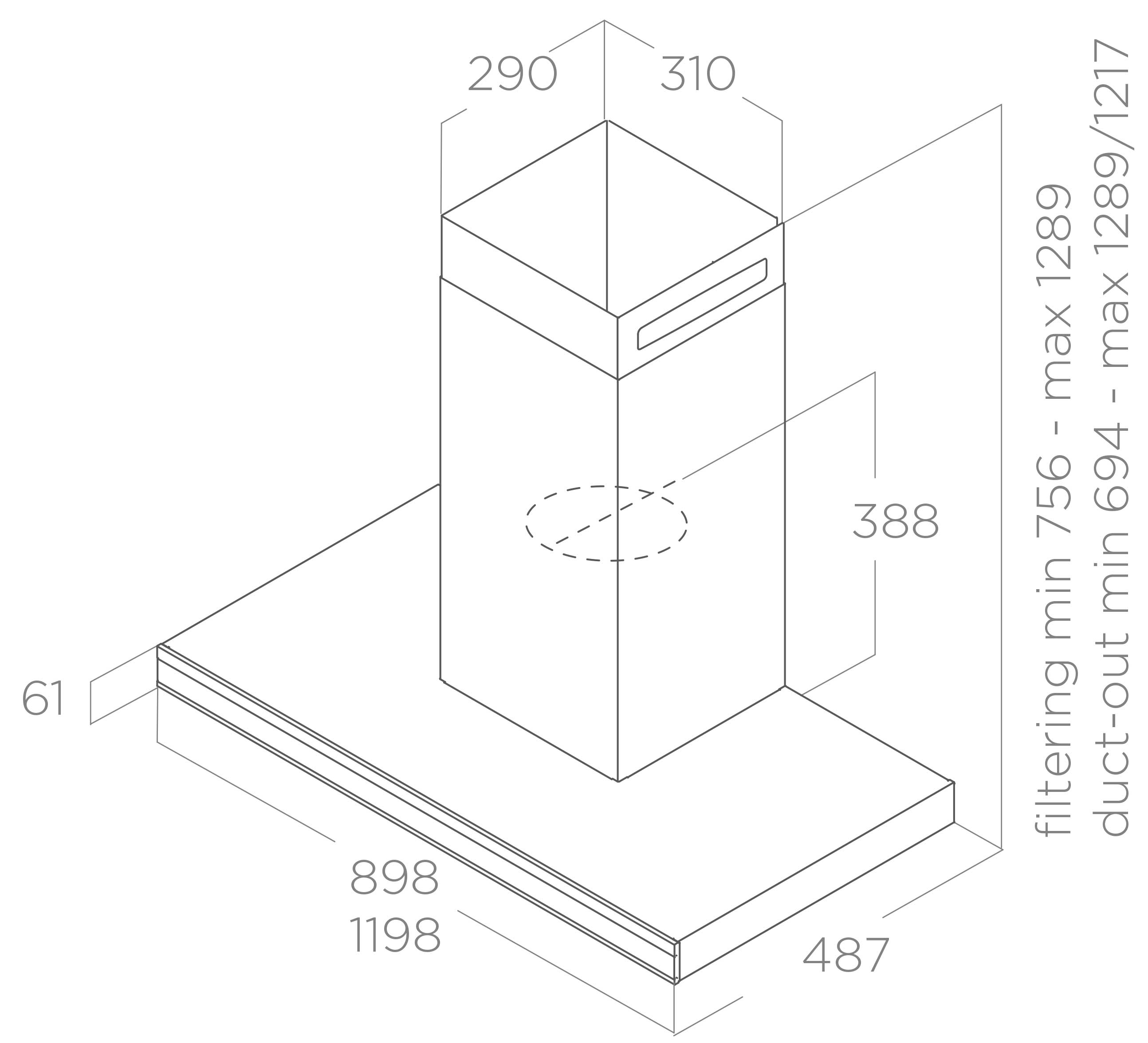 Вытяжка работает в режимах отвода и циркуляции, поэтому загрязнения удаляются из комнаты и перенаправляются в воздуховод, при этом можно очистить воздух и использовать повторно за счет возвращения его в помещение. Количество скоростей в этой модели: 3 шт. При этом максимальная производительность составляет 620 куб.м./ч. Уровень шума при полной загруженности — 58 дБ.