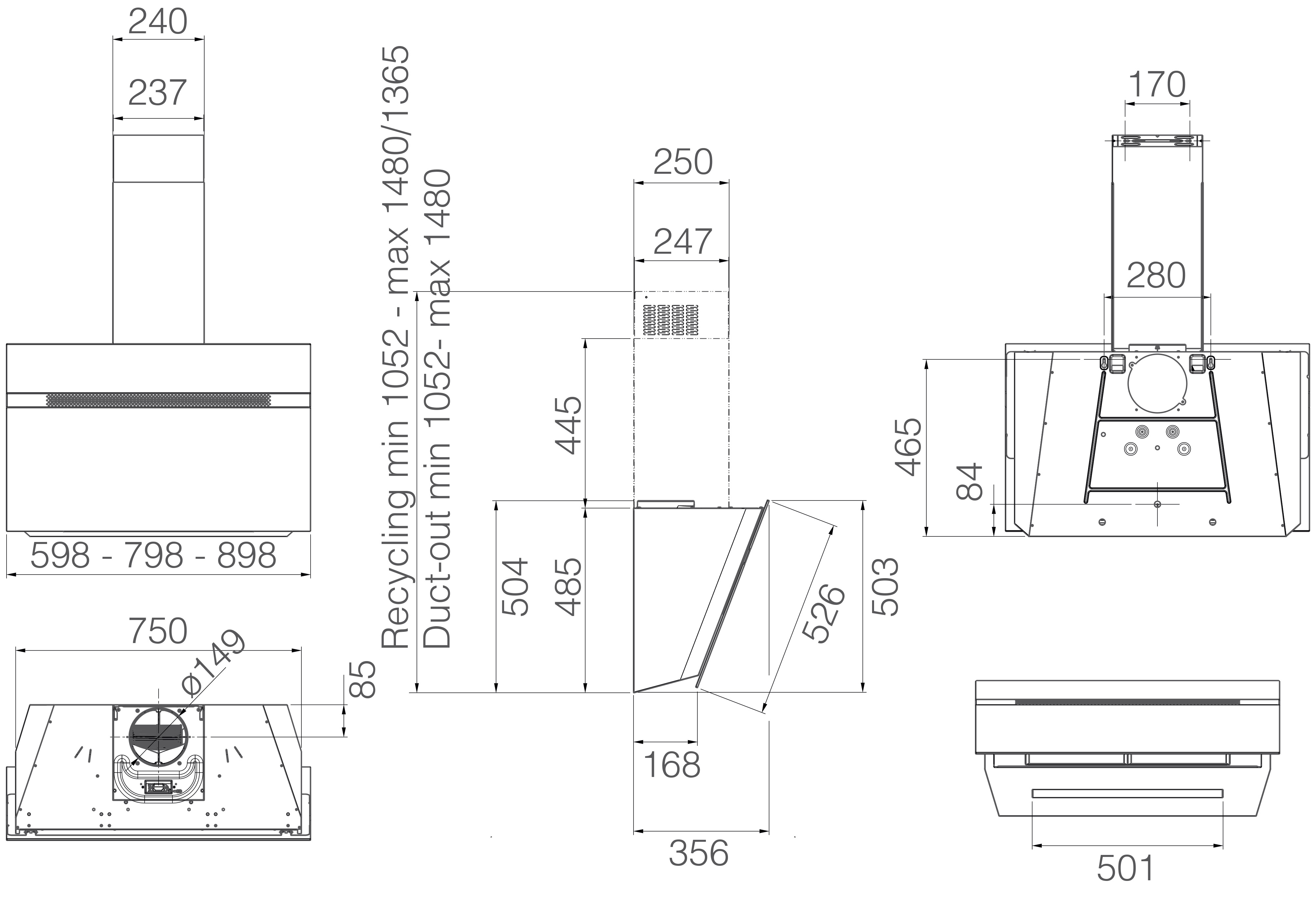 Вытяжка работает в режимах отвода и циркуляции, поэтому загрязнения удаляются из комнаты и перенаправляются в воздуховод, при этом можно очистить воздух и использовать повторно за счет возвращения его в помещение. Количество скоростей в этой модели: 3 шт. При этом максимальная производительность составляет 650 куб.м./ч. Уровень шума при полной загруженности — 58 дБ.